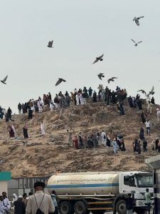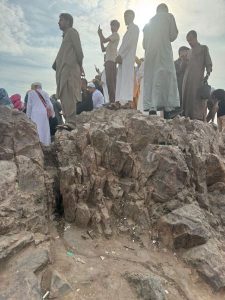 Then it hits me: the huge mountain behind us is actually Uhud itself. The battlefield wasn’t on the mountain, it was here, facing it. The small mound was the archers’ position; the great mountain was the protection for their backs. I see the mastery of their positioning. I consider this mound and try to comprehend why the Prophet ﷺ once said,