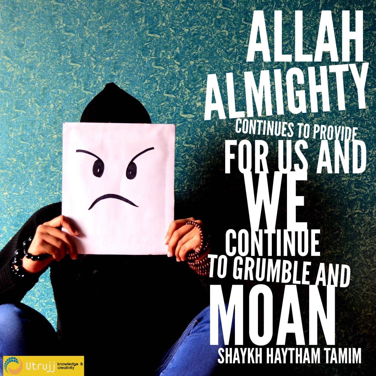 Don’t be Mr Grumpy. Be Mr Cheerful or Miss Grateful. We ask Allah to make us grateful for His favours upon us.