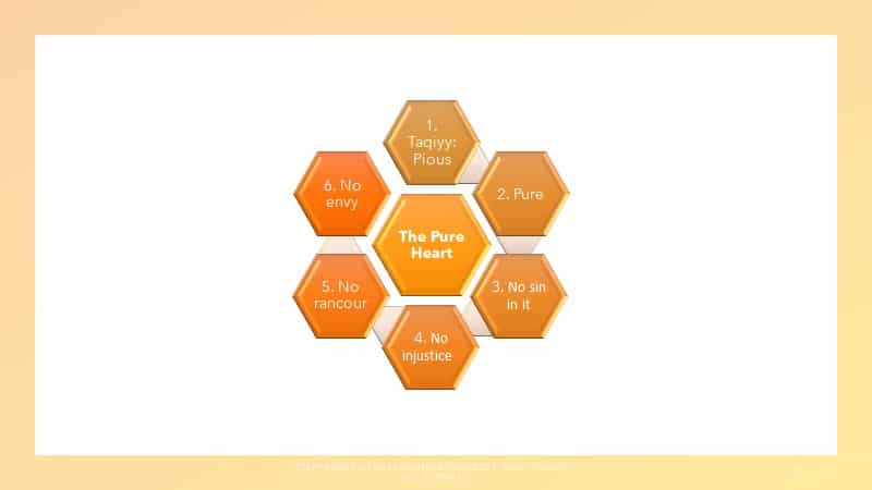 When the Prophet (peace be on him) was asked who is the best person, he replied the one who tells the truth and has a sound/pure heart. Then the Prophet (peace be upon him) further explained the features of the pure heart.