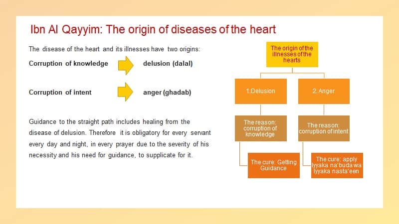 To identify diseases of the heart, Ibn Qayyim (may Allah have mercy on him) mentioned 4 things in different places, which I collected together. Masha’Allah he was a very deep scholar; from his experience, his readings, his different experiments, he narrowed down the origins of all diseases of the heart to 2 or 4 things.