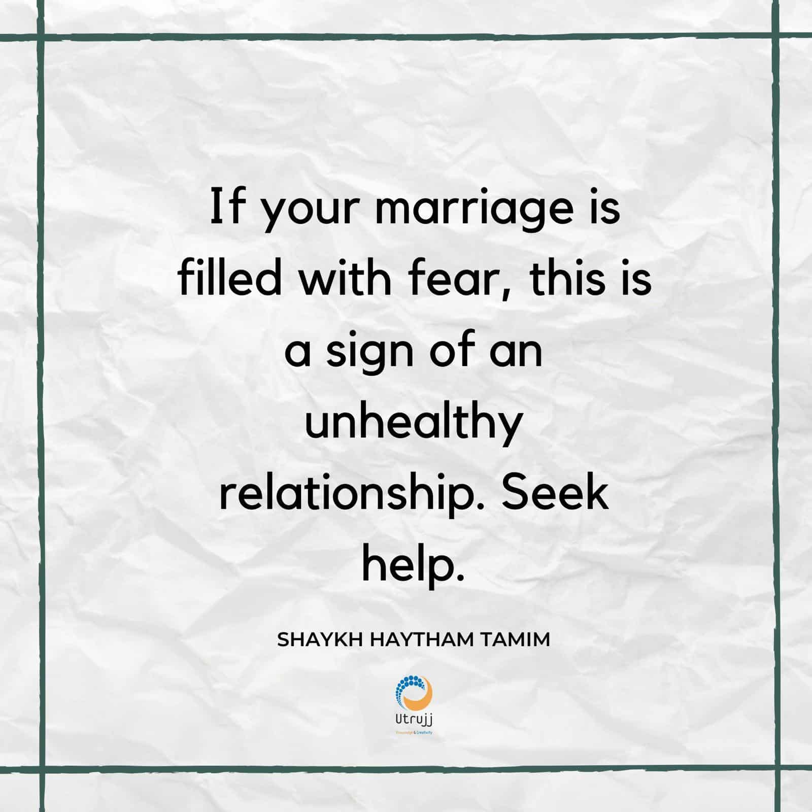 We need to create a good environment, equip our children with the right tools, and teach them the symptoms of healthy and unhealthy relationships. If they see the symptoms, they need to seek help. Divorce of course is not a light matter. And should only be taken when it is the solution, not the creation to a another problem. And the Prophet (peace be on him) also said:If any woman asks her husband for divorce without some strong reason, the odour of Paradise will be forbidden to her. (Abu Dawoud)Whether to divorce or not also depends on how long a couple has been married. If they are just starting out and in their first two or three years, they should work at making their marriage work, without being harmed and with the support of their families. Marriage is a mutual contract between two people with their consent, to live together and help and support each other to their journey to Allah Almighty and look after their family, give them the right tarbiyya to be among people of Jannah. Sign up to Shaykh Haytham Tamim’s marriage course