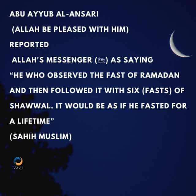 He who observed the fast of Ramadan and then followed it with six (fasts) of Shawwal, it would be as if he fasted for a lifetime. (Sahih Muslim)
