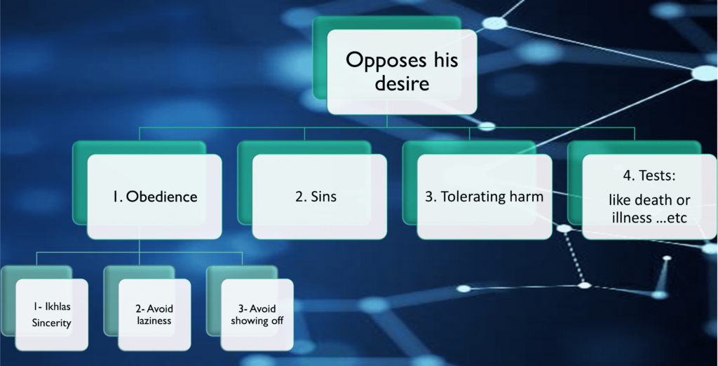 Ghazali says in life there are two options – having things the way you like and not having things the way you like. For instance you may dislike living in cold weather or being in the company of talkative people but you might be surrounded by them. Having to put up with what you don’t’ like is an obvious test of your sabr.