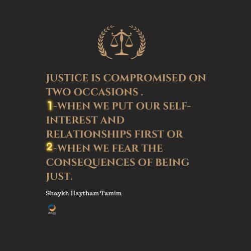 In the sunnah there are countless narrations in which Prophet Muhammad (peace be upon him) mentioned the importance of justice. Justice is not simply what is delivered in court, but something which has to permeate every aspect of our life – whether it is between our children, in our speech, in our transactions, between our friends, or our employees, justice has to be there.