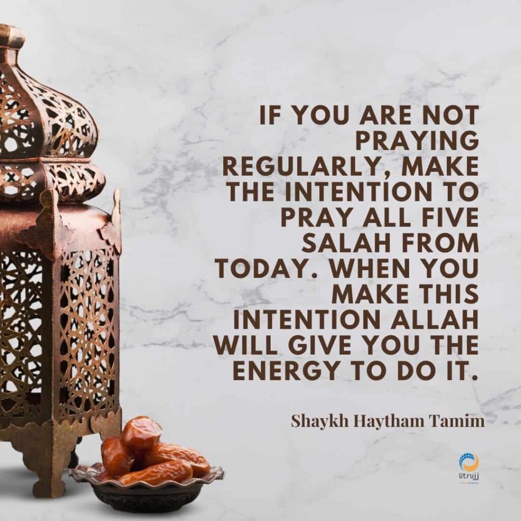 Salah energises us, rejuvenates us, empowers us to face the tests we go through every day. This is why we have five prayers, not just one: because we face continuous tests all day, from waking up until we go to sleep, every day until we meet Allah. We need to strengthen our salah and make it in accordance with the Sunnah. And we have an opportunity in Ramadan. Some people might not be praying regularly, but in Ramadan they keep their salah. So don’t lose this after Ramadan. We ask Allah to strengthen imaan, and make salah our mi’raj to Him during every salah. Ameen.