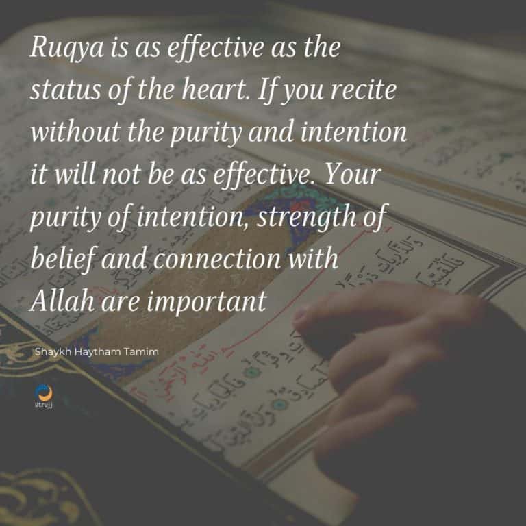 We all recite Fatiha 17 times a day every day, but we don’t know that it is ruqya. It has to come with strong belief, otherwise it’s just like pressing a button and having a reciter doing a recitation. Therefore we have to recite with the heart before we can get the healing.