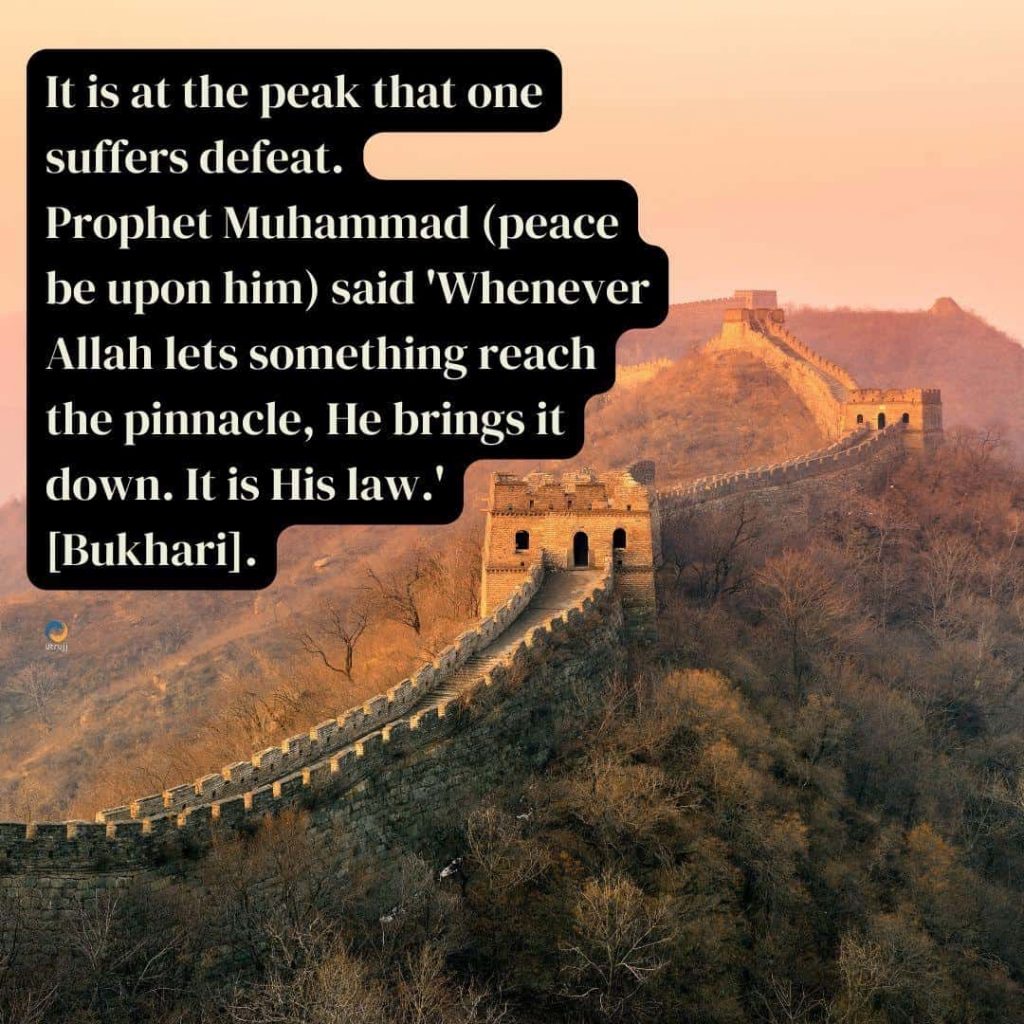 It is at the peak of their command that Allah Almighty seizes the perpetrators of oppression, especially oppressive rulers and authorities. They do not remain in power forever. This is a promise from the Prophet (peace be upon him). It is the beginning of the end of those who claim that nothing can stop them.