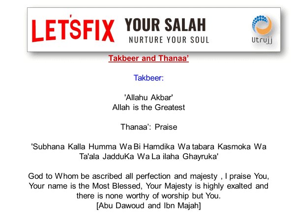 After the takbeer and before beginning the recitation of Surat al Fatihah, the sunnah is to recite either the thana or the dua al istiftah, followed by the istiadha. These are not fard elements of salah and one’s salah would not be invalidated if one missed them out, but one would be rewarded for doing them they are from the sunnah and it brings khushoo’ (tranquillity and purpose) when recited with understanding..