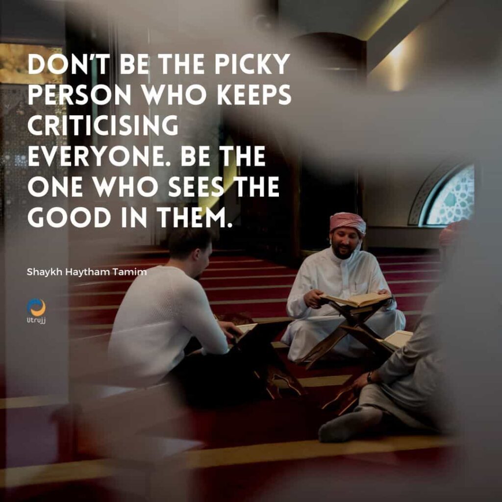 The Prophet (peace be upon him) is teaching us how to tame our tendency to go wild when criticising others. For some people this is their specialty; whatever they see they find fault. This is fine if they work on a production line in a factory or quality control, but it doesn’t work with people. You can’t tell everybody what their defects are. This is rude and quite often unacceptable.