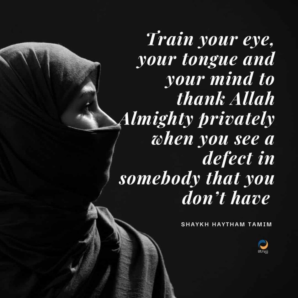 Train your eye, your tongue and your mind to thank Allah Almighty privately, silently when you see a defect in somebody you don’t have.