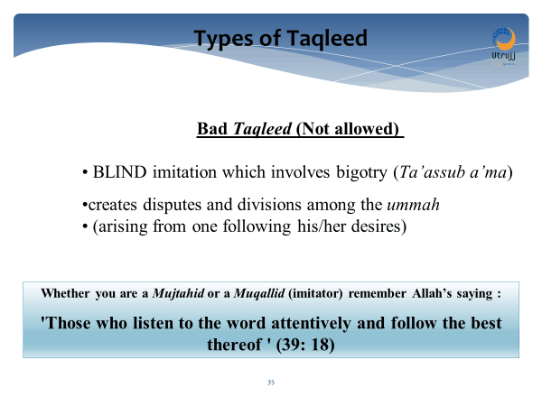 We have different types of taqleed – blind taqleed, which is bad, and leads to bigotry and sectarianism. It is quite common.